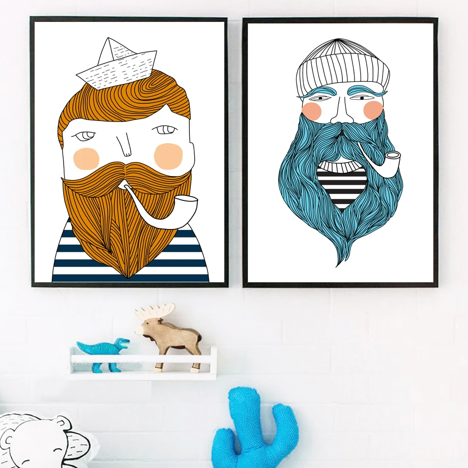 Kartun Pelaut Nelayan Jenggot Ilustrasi Dinding Seni Lukisan Kanvas Nordic Poster dan Cetakan Dinding Gambar untuk Anak anak Room Dekorasi|Painting & Calligraphy| - AliExpress