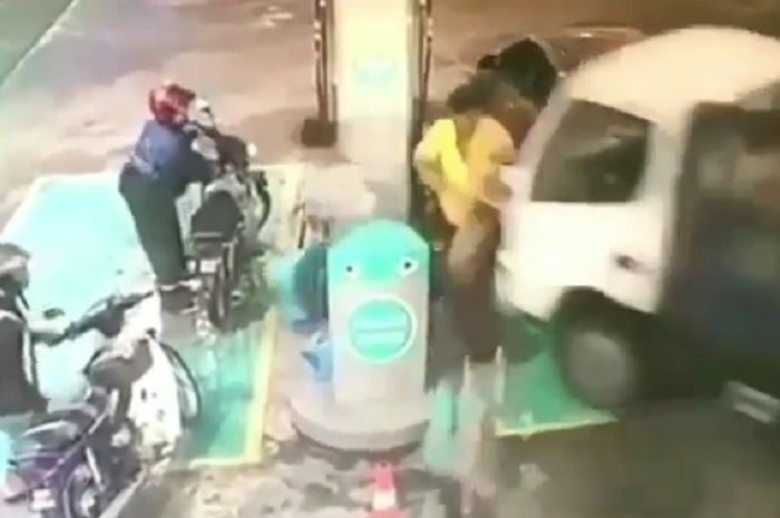 Detik-detik Truk Tabrak Dispenser Pom Bensin dan Hajar 2 Orang, Korban Berhamburan - MotorPlus-Online.com