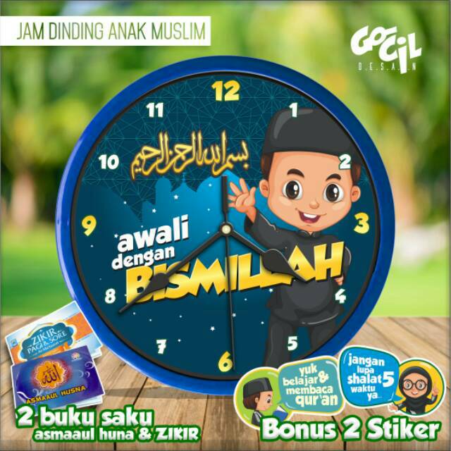 jam dinding seri kartun anak islam " Awali dengan Bismillah " kado atau sebagai hadiah untuk anak | Shopee Indonesia