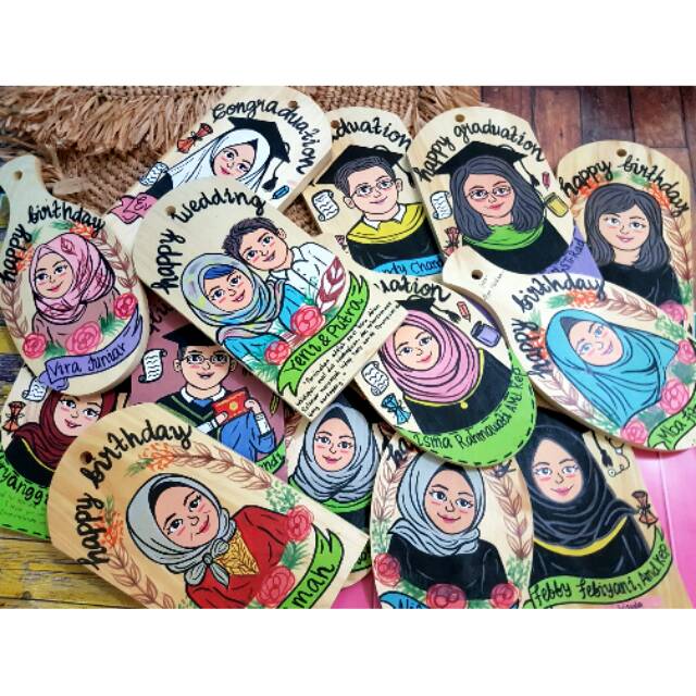 Talenan lukis hadiah kado wisuda custom handmade unik lucu mahar souvenir pajangan karikatur nikah | Shopee Indonesia
