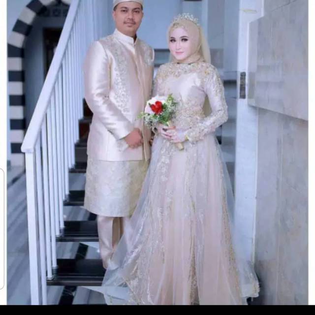 Gaun pengantin hijab couple /gaun wedding /kebaya akad | Shopee Indonesia
