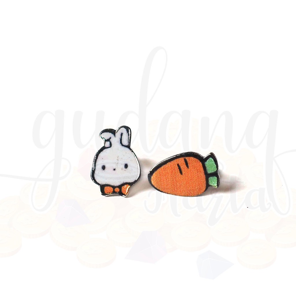 Anting Stud Mini Rabbit and Carrot Kelinci dan Wortel Simple Unik Lucu GH 203437 | Shopee Indonesia