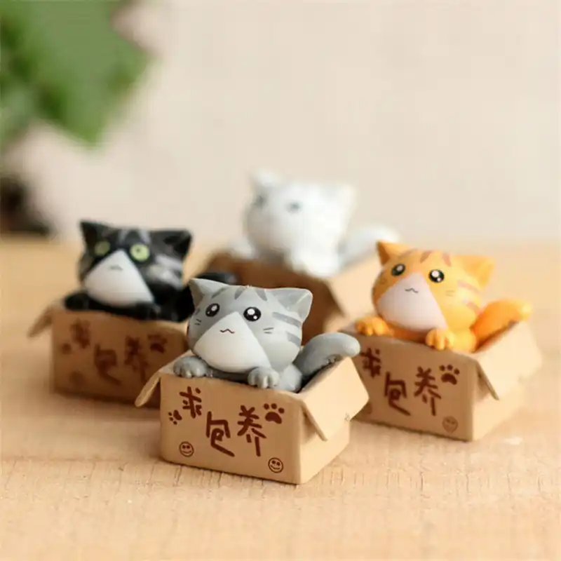 4 Pcs Piece Kawaii Kartun Kotak Amal Kucing Model Patung Kecil Mobil Figurine Kerajinan Taman Gambar Ornamen DIY Miniatur| | - AliExpress
