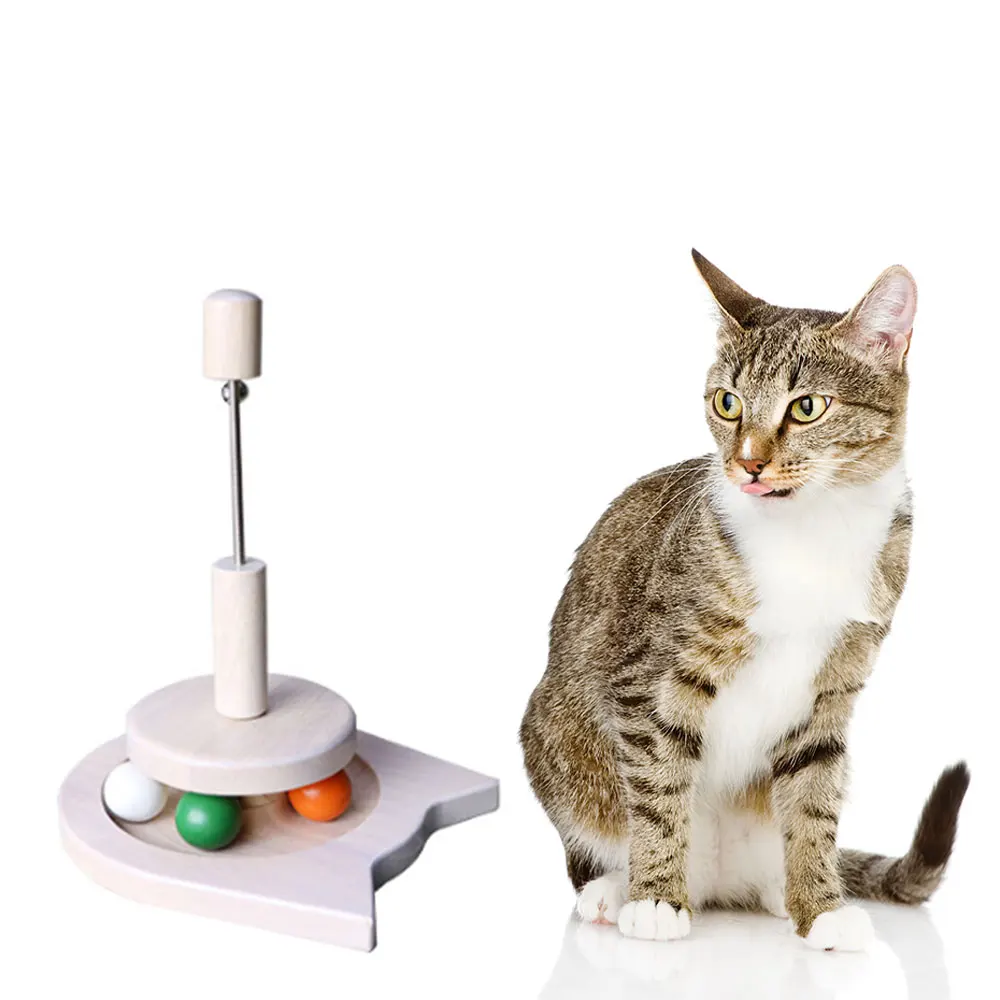 Kayu Kucing Bermain Mainan Gila Berputar Bola Disk dengan Bola Berwarna Bells Pet Mainan Interaktif Kucing Peliharaan Bola Intelijen Perlengkapan|Mainan Kucing| - AliExpress