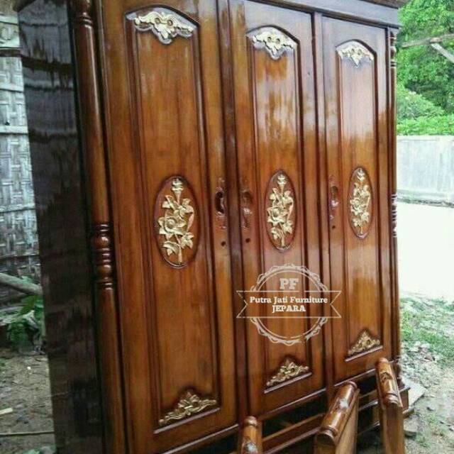 Almari pakaian lemari pakaian lemari ukir kayu jati lemari tiga 3 pintu mebel jepara | Shopee Indonesia
