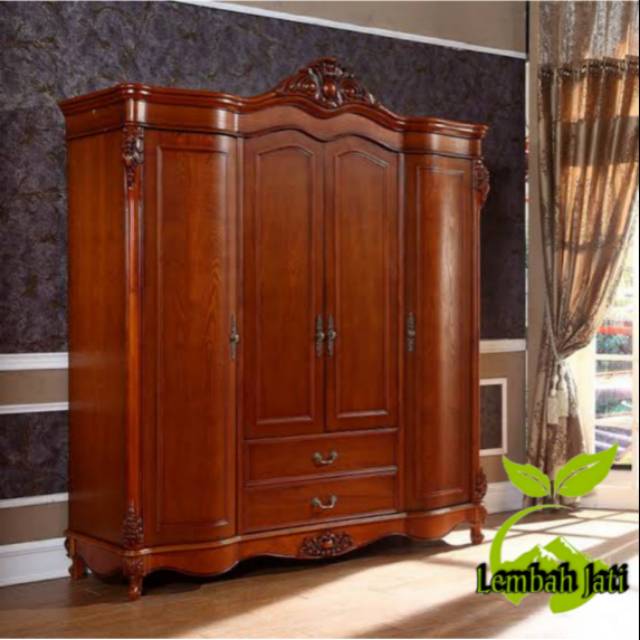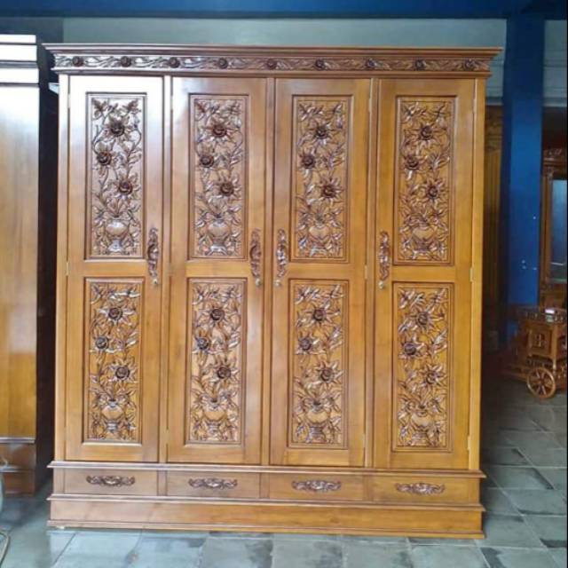 Lemari Pakaian Jati Lemari Ukir Jati 4 Pintu | Shopee Indonesia