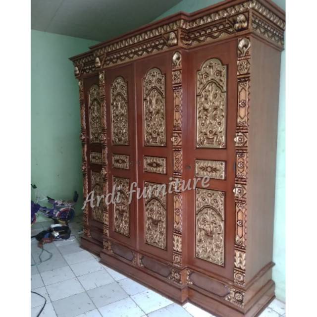 Almari pakaian lemari pakaian lemari ukir gebyok almari empat 4 pintu kayu jati mebel jepara | Shopee Indonesia
