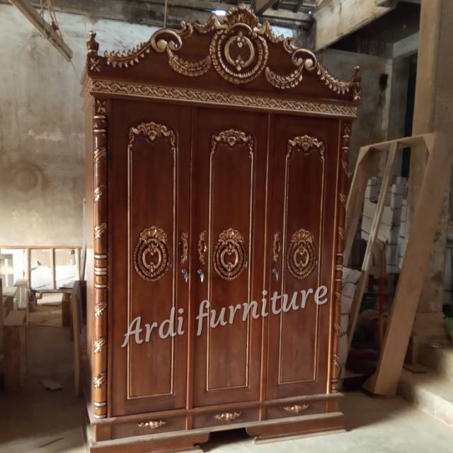 Jual Lemari Alamari Pakaian 3 Pintu Kayu Jati Ukir Jepara Promo Free Ongkir - Kab. Jepara - Seni Jati Ukiran Jepara | Tokopedia