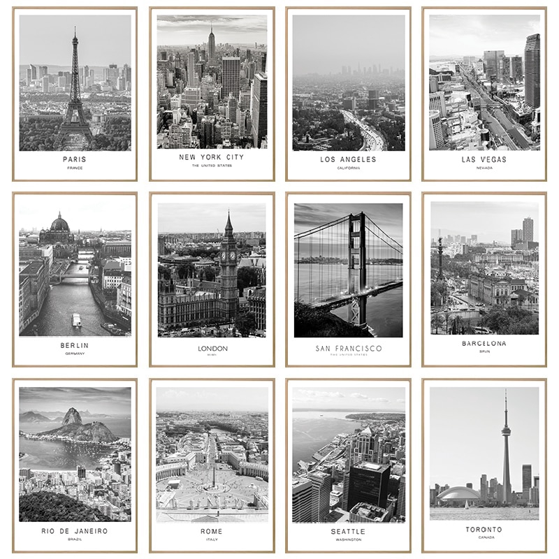 Lukisan Minyak Hitam dan Putih Bentuk Landscape Gambar Kota Dunia Paris London New York Gaya Nordic | Shopee Indonesia