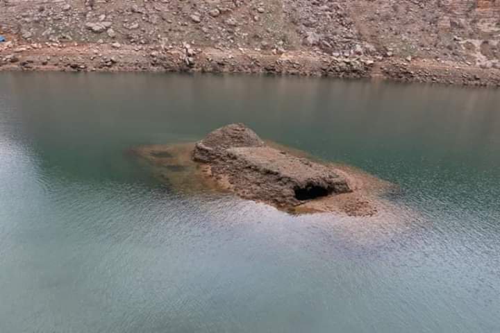 Orenji : “Gambar menunjukkan Permukaan air menurun sekitar 10 meter (32 kaki) dan mengungkapkan sisa-sisa lingkungan Çakrören, termasuk makam Elisa (Ilyasa) – salah satu dari 25 nabi yang disebutkan dalam Al-Quran.…
