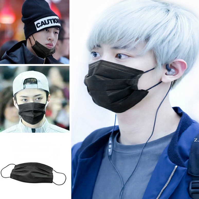 KPOP Black Disposable Mask Masker Hitam Korea BTS / Masker Mulut Wanna One / Masker Hitam Import, Serba Serbi, Others di Carousell