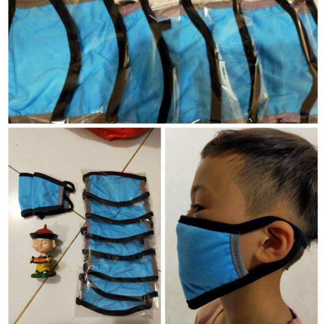Masker kain anak warna biru bis hitam bisa di cuci | Shopee Indonesia