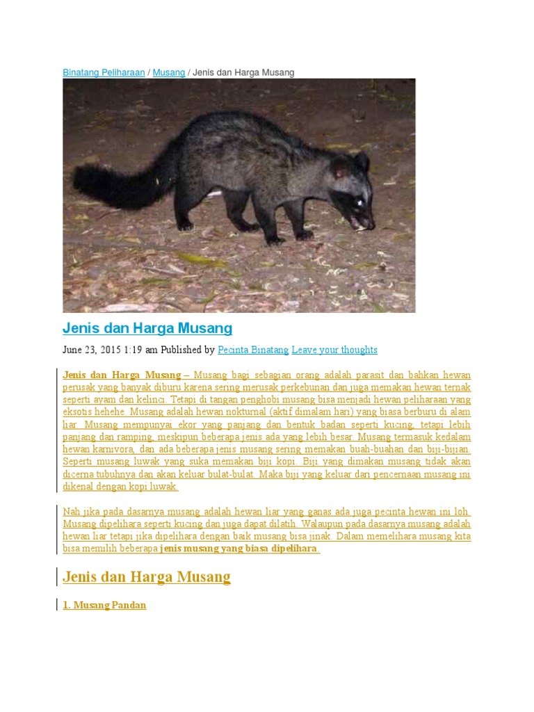 Binatang Peliharaan / Musang / Jenis dan Harga Musang