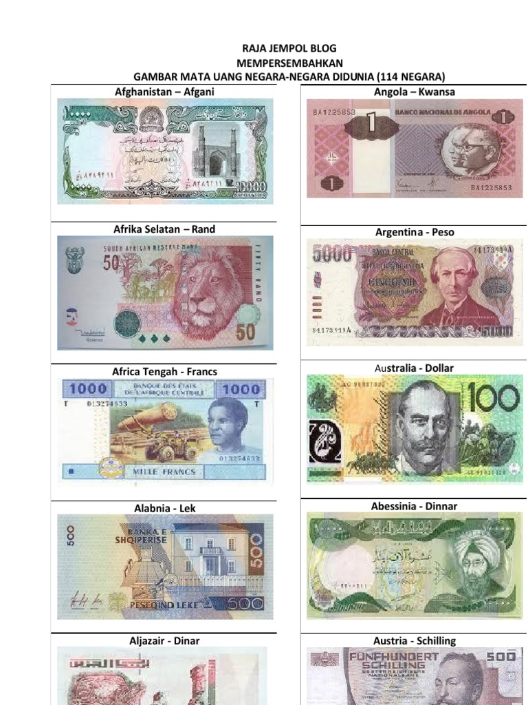 Fakta Dunia Rezal: Daftar Mata Uang beserta Gambarnya dari Seluruh Negara di Dunia , Lengkap