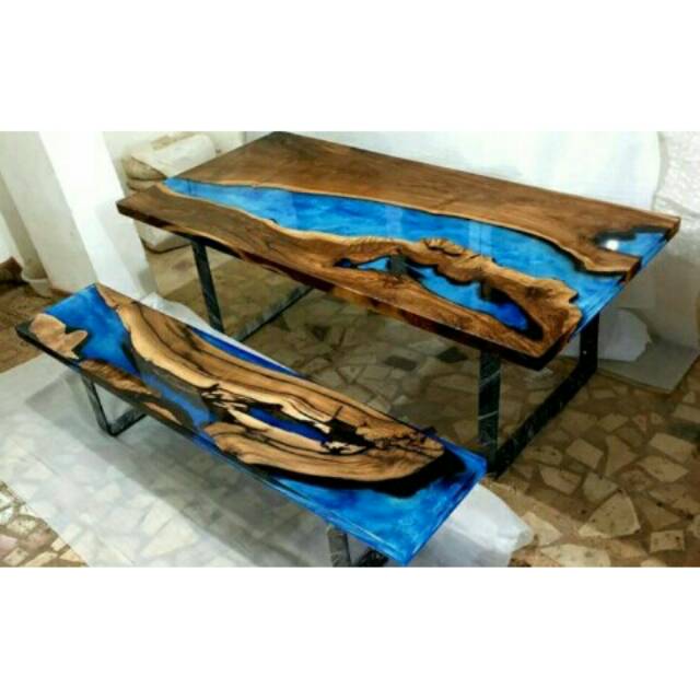 Promo meja bangku natural kayu resin motif sungai | Shopee Indonesia