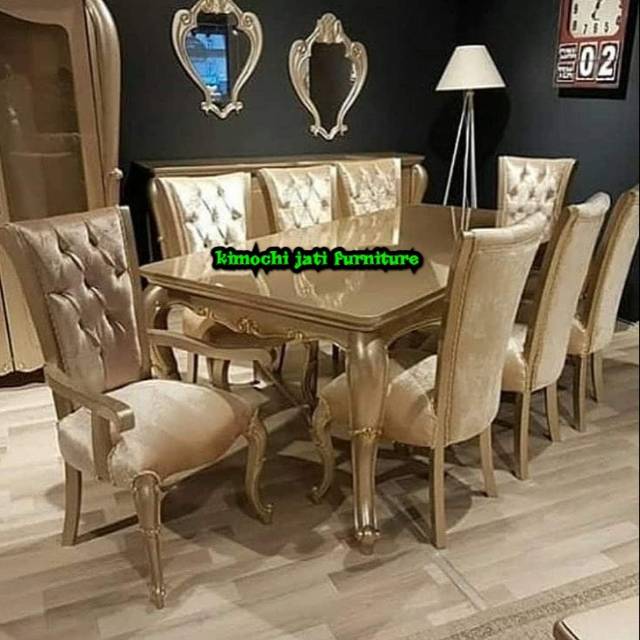 Meja makan minimalis meja makan mewah kursi makan jok meja makan gold mewah mebel furniture jepara | Shopee Indonesia