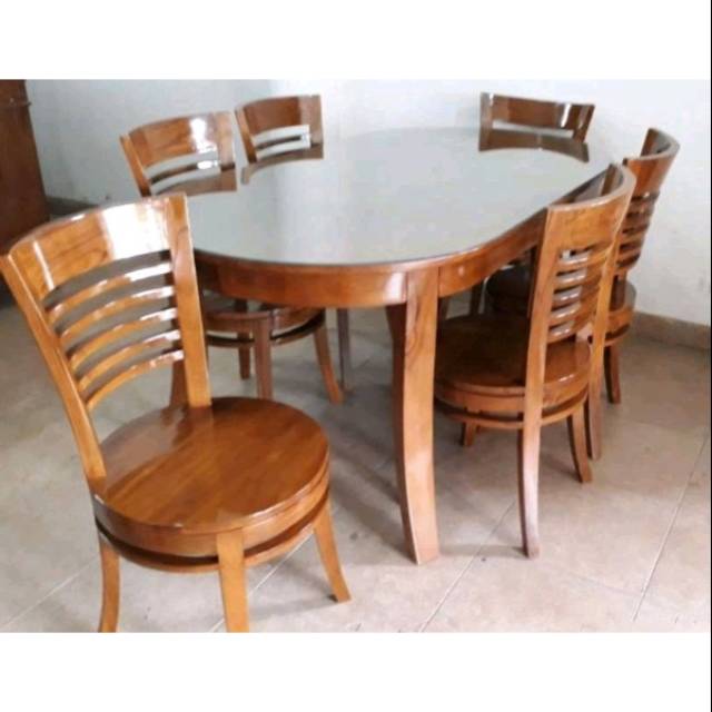 Jual set meja makan set kursi makan minimalis salur meja oval kayi jati - Kab. Jepara - shima jaya | Tokopedia