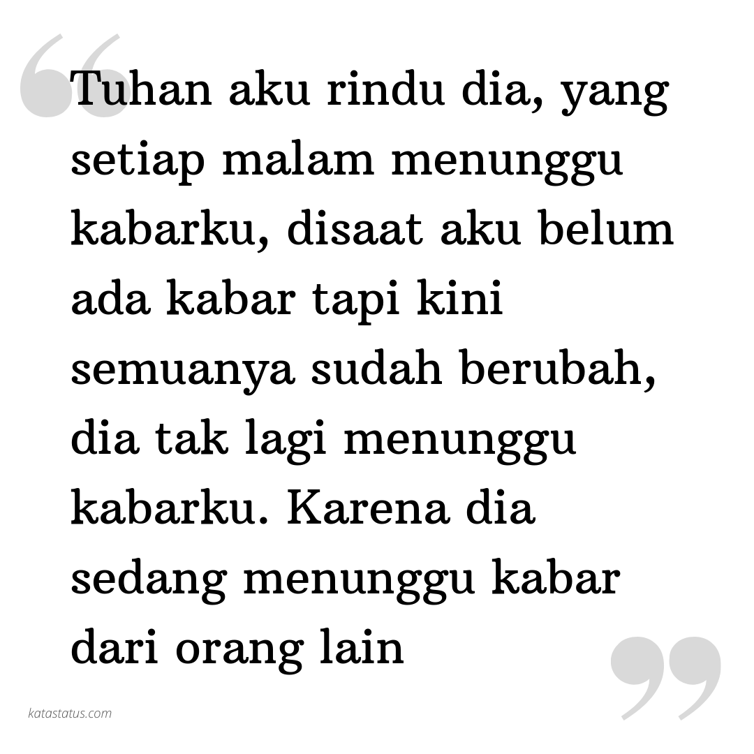 Kata Status Rindu: Tuhan aku rindu dia, yang setiap malam menunggu kabarku, disaat aku belum ada kabar tapi kini semuanya sudah berubah, dia tak lagi menunggu kabarku. Karena dia sedang menunggu kabar