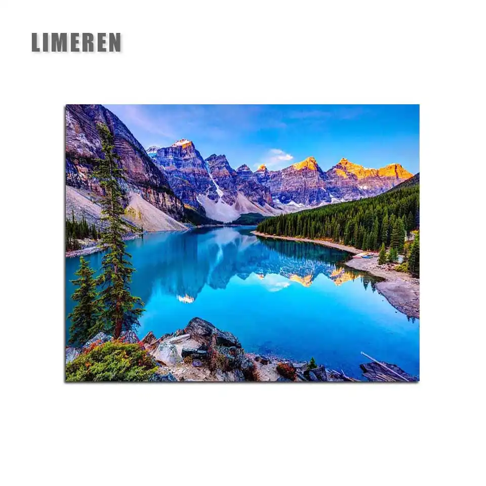 Musim Semi Berangin dan Lukisan Yang Indah dengan Angka Pegunungan Lake Refleksi Lanskap Dekorasi Rumah Mewarnai dengan Angka| | - AliExpress
