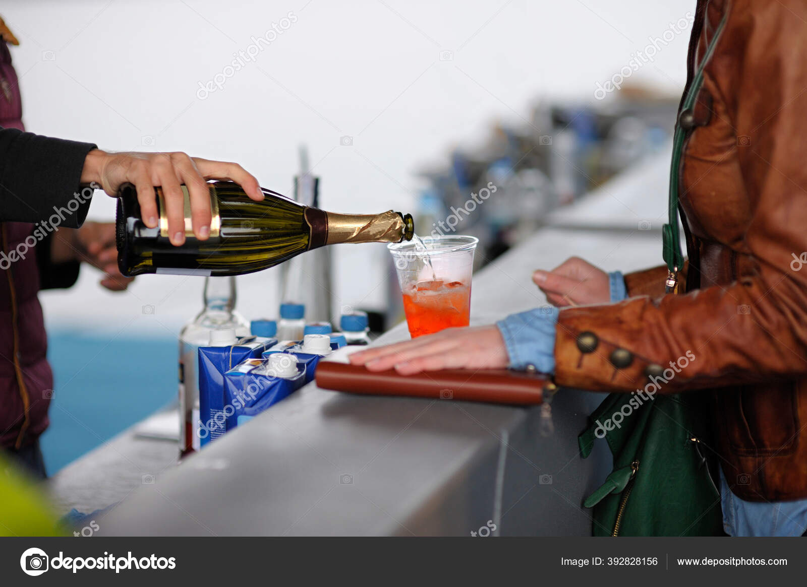 Bartender Menuangkan Minuman Dari Botol Dalam Gelas Plastik — Stok Foto © foto-dog #392828156