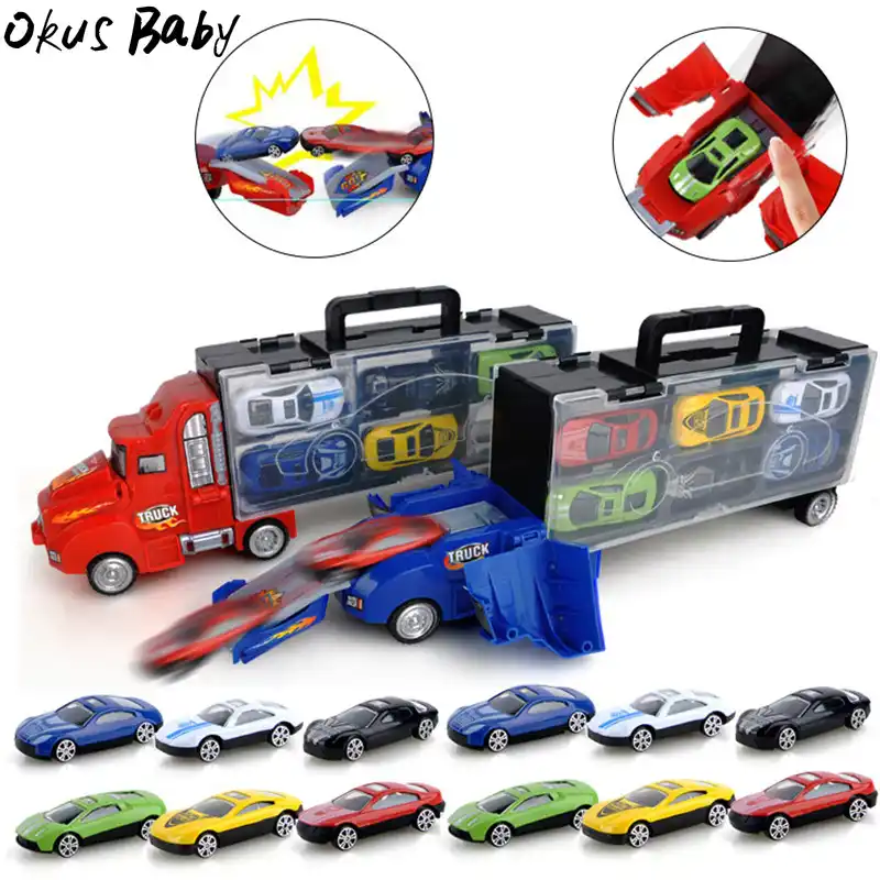 2019 Terbaru Anak Mainan Ketapel Pertempuran Truk Kontainer Penyimpanan Kotak 12 Geser Kecil Paduan Model Mobil Mainan Hadiah Ulang Tahun| | - AliExpress