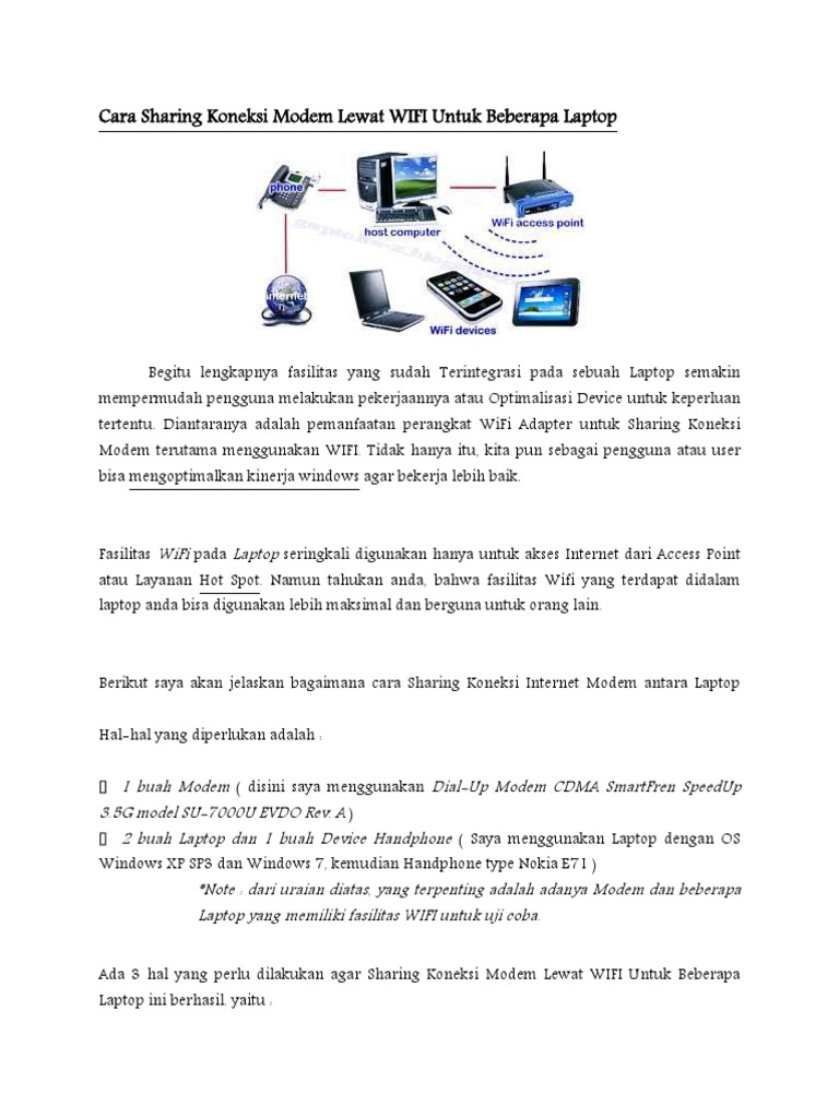 Cara Sharing Koneksi Modem Lewat WIFI Untuk Beberapa Laptop