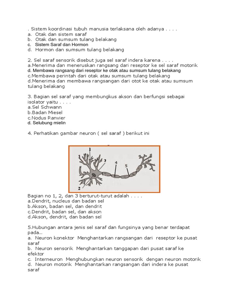 Sel Saraf Sensorik Motorik Multipolar Bipolar, Pengertian Jenis Struktur Fungsi Contoh Soal Ujian Materi pdf