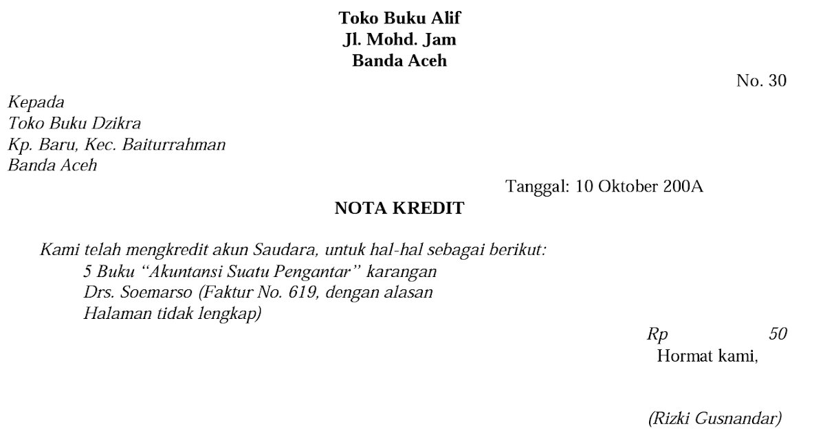 Pengertian Nota Kredit dan contohnya – Fatchi sabilla sahlan