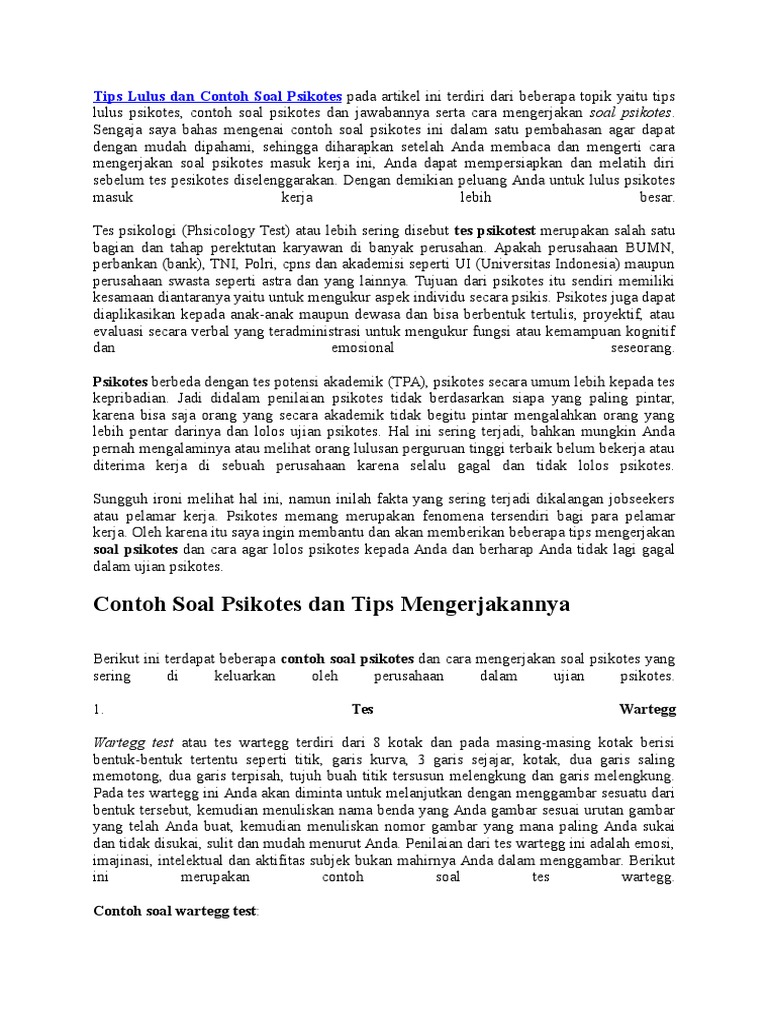 Contoh Soal Psikotes dan Jawabannya Lengkap Terbaru doc dan PDF - AnakRegular.com