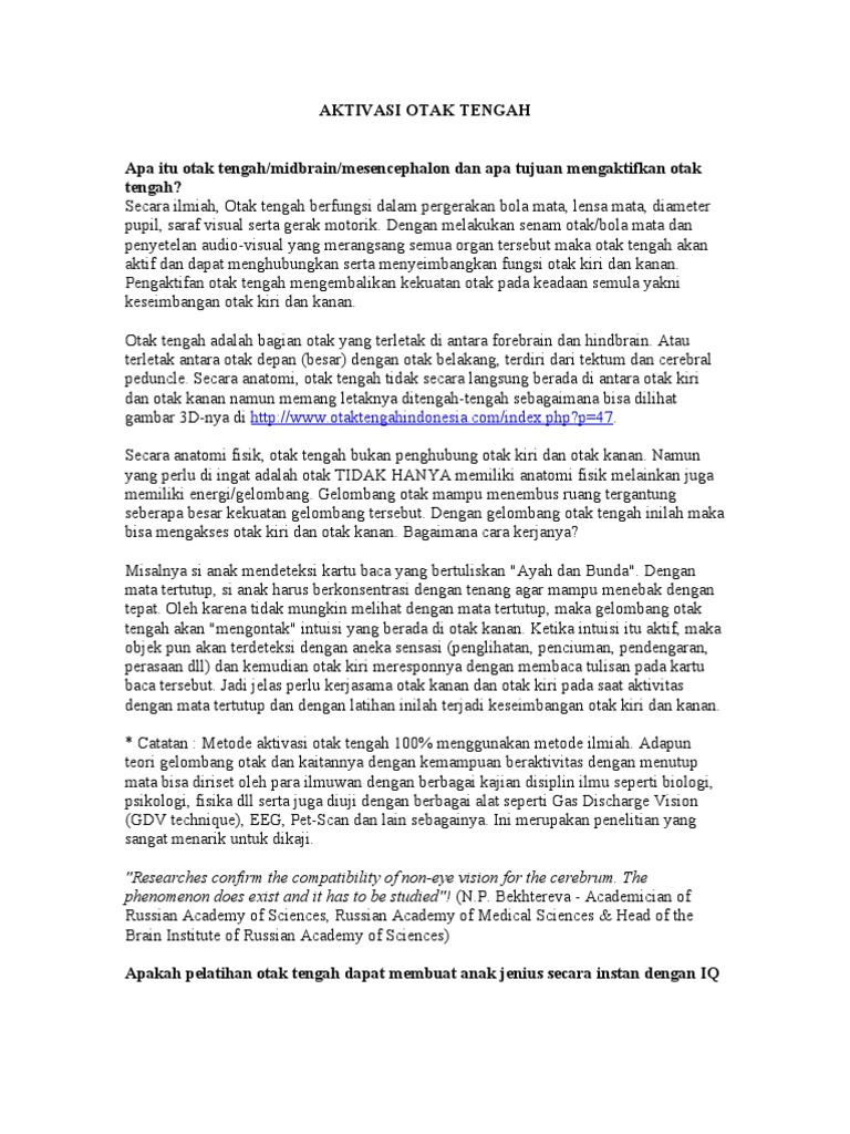 Cara Untuk Aktivasi Otak Tengah - Versi Genius Mind Consultan