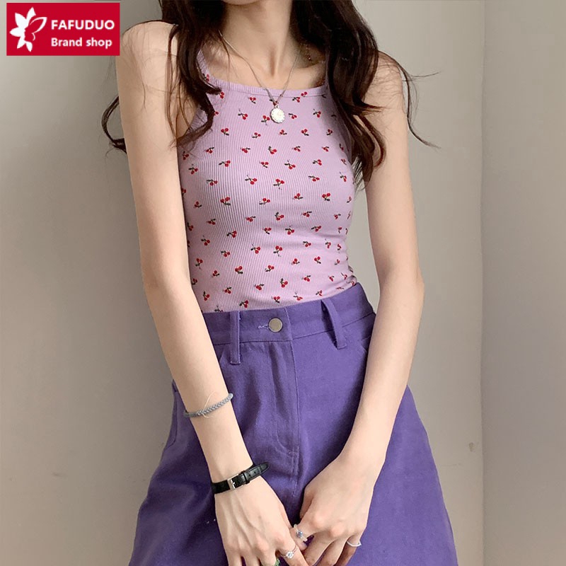 FAFUDUOSinglet Wanita Empat Warna Boleh Didapati Dalam Dua Gaya Comel Ceri Corak Gambar Sling Singlet Kecil Rompi | Shopee Malaysia