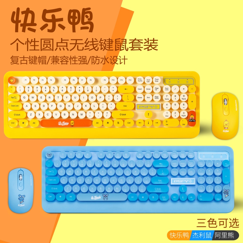 Perkotaan Fangyuan K68 Retro Putaran Wireless Keyboard Mouse Set Kartun Mode Wireless Keyboard dan M | Shopee Indonesia