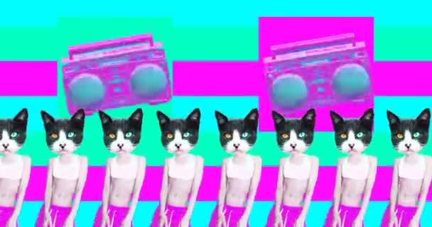 Minimal animasi seni. Gaya kucing perkotaan. Pencinta pesta dansa — Stok Video © Porechenskaya #391240650