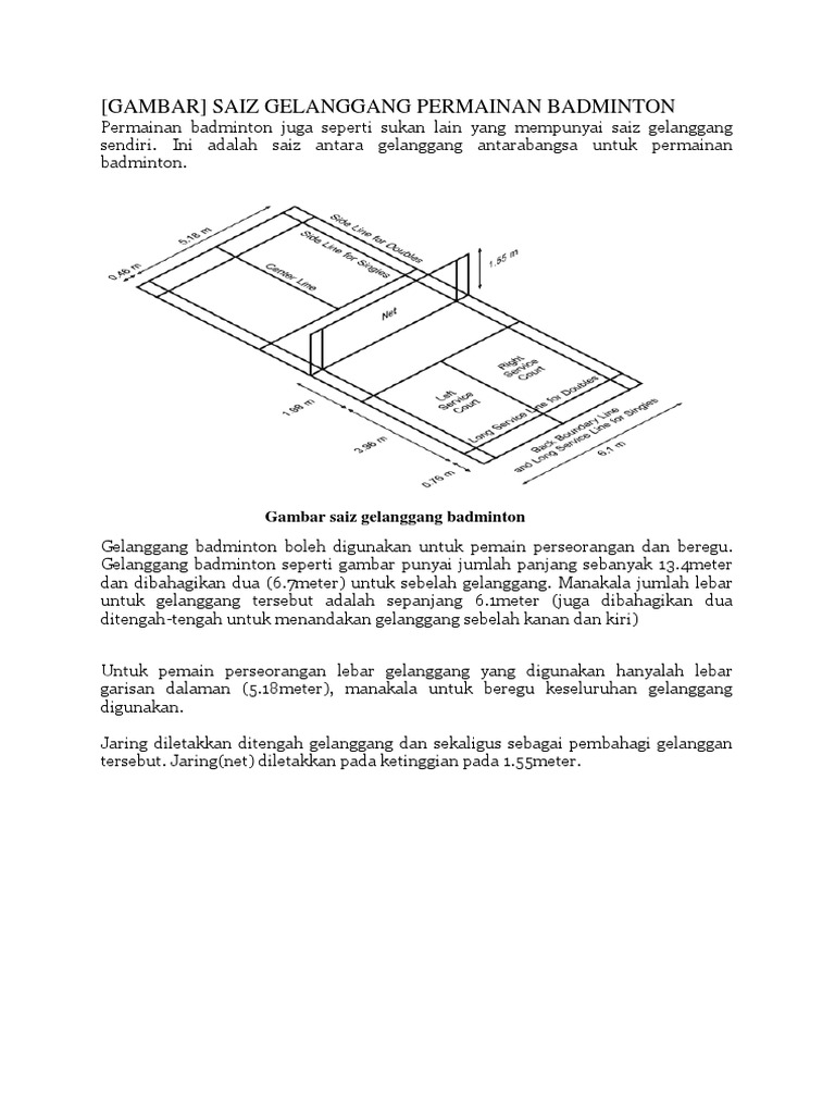 Ukuran Lapangan Badminton Lengkap Gambar dan Keterangannya - MARKIJAR.Com