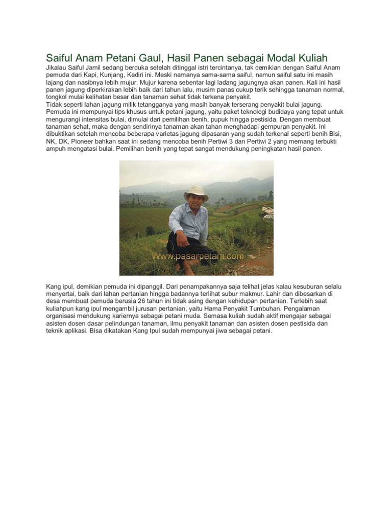 Saiful Anam Petani Gaul, Hasil Panen sebagai Modal Kuliah | BLOG.pasaRpetani.com
