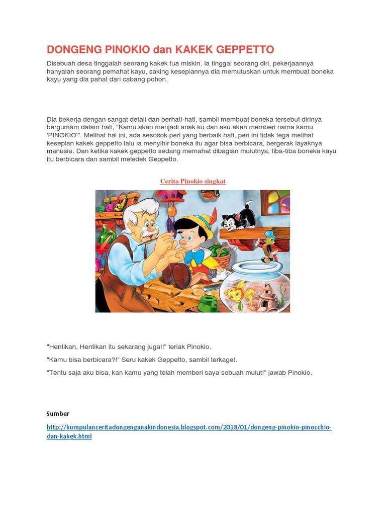 Contoh teks story telling Pinokio - Terus Mencari Ilmu
