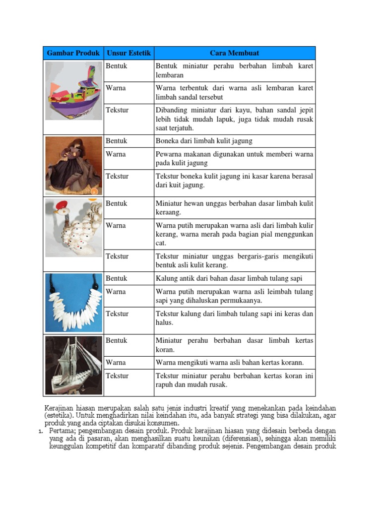 Produk Hiasan Dari Bahan Limbah Dan Nilai Estetikanya