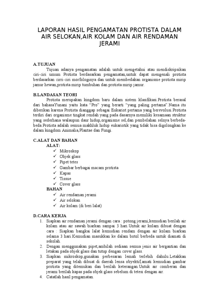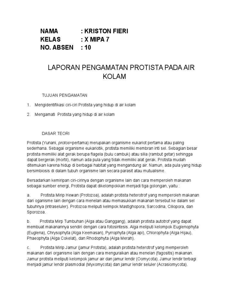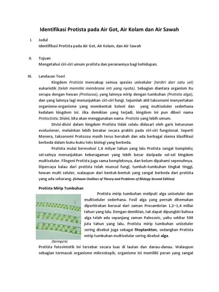 LAPORAN PRAKTIKUM PENGAMATAN PROTISTA - PDF Free Download