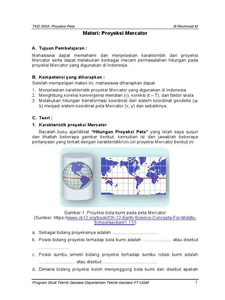 Kumpulan Tugas Kuliah: Sistem Proyeksi Peta (Mercator, Transverse Mercator, Universal Transverse Mercator, dan Polyeder)