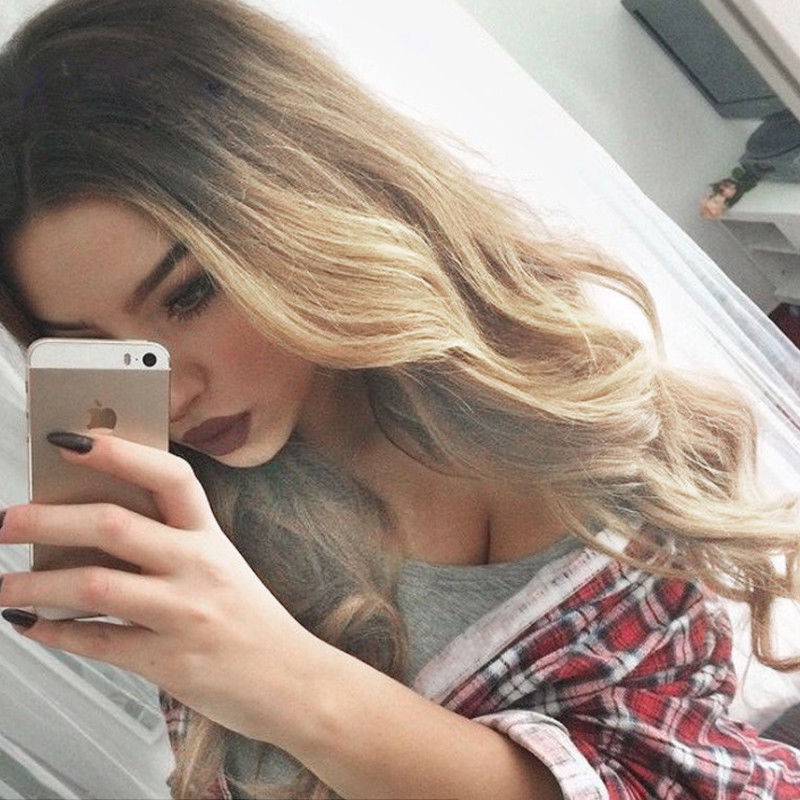 Wanita 22 “rambut panjang bergelombang penuh wig hitam akar pirang ombre wig gaya busana | Shopee Indonesia
