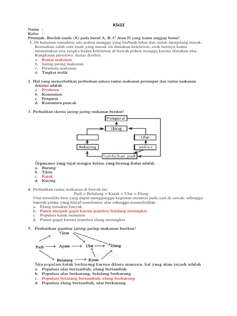 Rantai makanan: c. Populasi belalang bertambah, elang berkurang