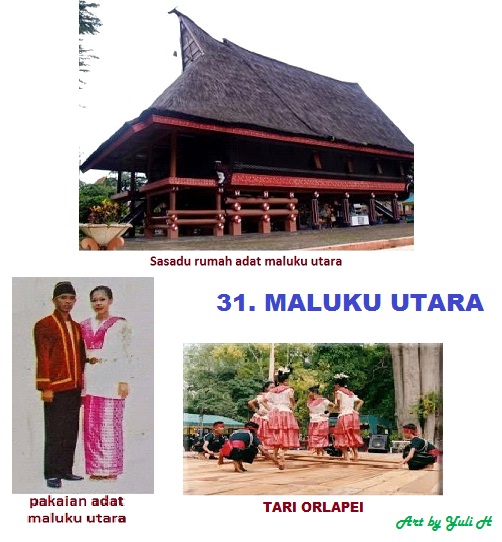 RUMAH ADAT, PAKAIAN ADAT DAN SENJATA nbsp;· PROVINSI MALUKU UTARA Rumah Adat Maluku Utara Pakaian adat Maluku Utara Senjata Tradisional Maluku Utara 29. PROVINSI MALUKU Rumah Adat