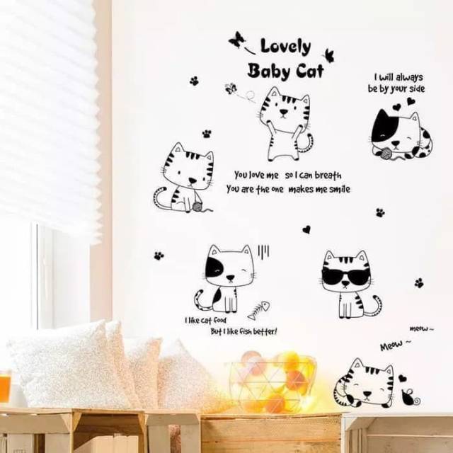 Stiker Dinding 60x90cm Motif Karakter Kucing Cute Cat Hitam Putih Dekorasi Ruang Kamar Rumah | Shopee Indonesia