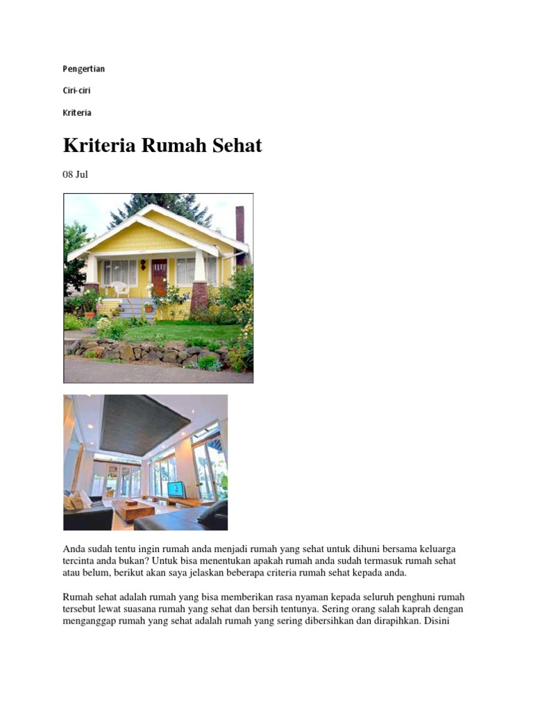 Pengertian Rumah Sehat - Seputar Pengertian