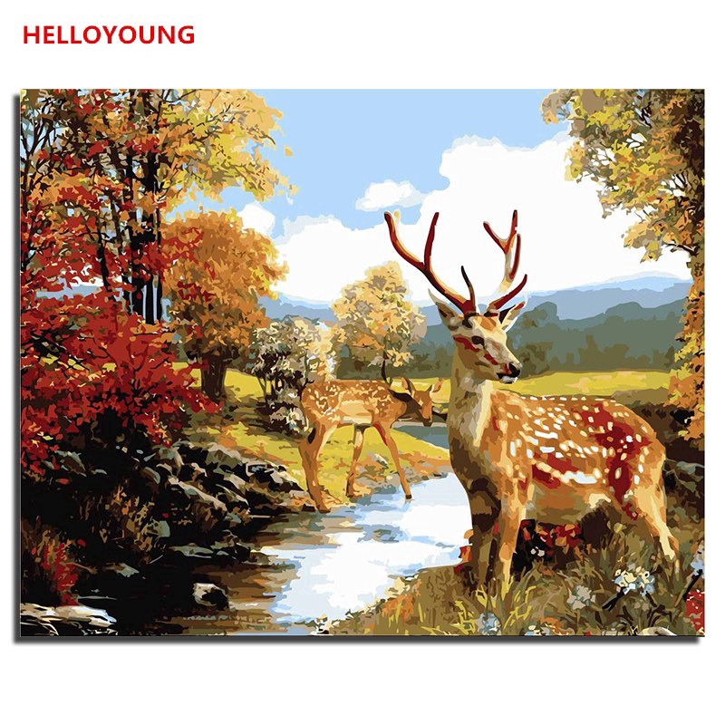 Lukisan Cat Minyak DIY Gambar Rusa Sika dengan Angka untuk Dekorasi Rumah | Shopee Indonesia