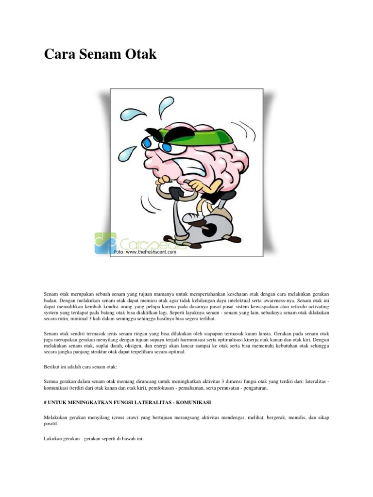 MANFAAT SENAM OTAK. Zulaini * - PDF Download Gratis