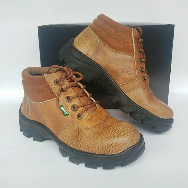 SEPATU BOOTS SAFETY KULIT SAPI ASLI SEPATU PROYEK UJUNG BESI TAN | Shopee Indonesia