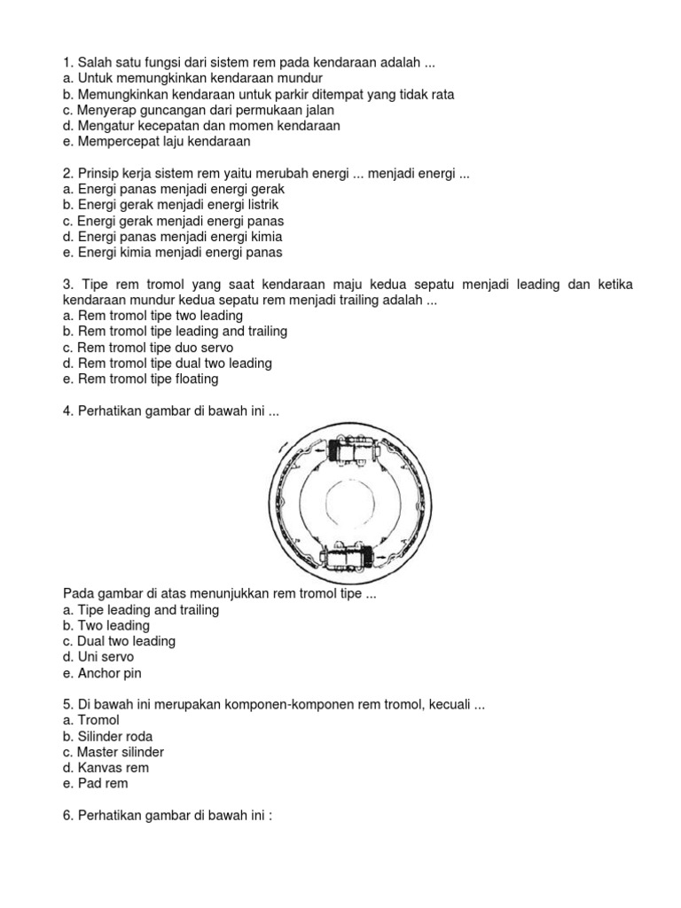 Fungsi Komponen - Komponen Pada Rem Tromol ( Drum Brake ) - lks otomotif