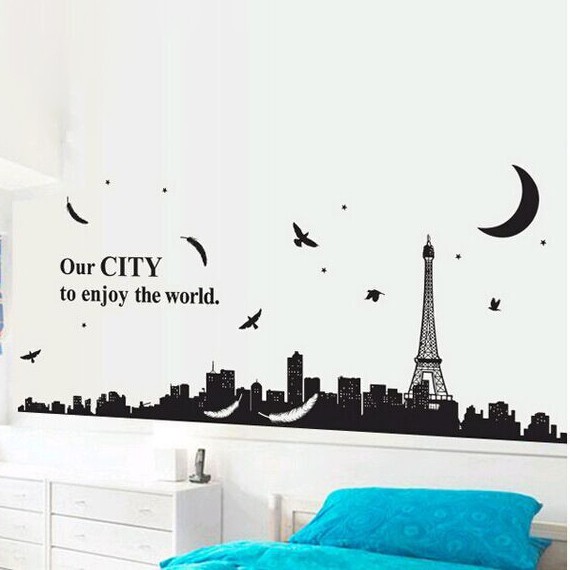 Stiker Dinding Kota Paris Siluet Removable Dinding Pvc Dekorasi Untuk Ruang Tamu/kamar Tidur/tv Stiker Dinding Ay935 - Buy Romantis Kamar Tidur Dinding Dekorasi Stiker Dinding Rumah Dekorasi Hiasan Dinding Dekorasi Product on
