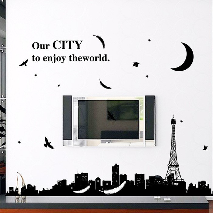 Ins Stiker Dinding dengan Bahan Mudah Dilepas dan Gambar Siluet Kota untuk Dekorasi Rumah | Shopee Indonesia